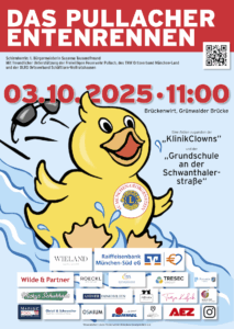 Am 3. Oktober ist es soweit! Über 2000 gelber Quieschenten werden wieder an der Isarbrücke zum großen Entenrennen des Lions Clubs München-Georgenstein antreten. Das Wettschwimmen der Gummitierchen um die vielen hochwertigen Preise der 19 Sponsoren startet um 11 Uhr am Pullacher Ufer unterhalb der Grünwalderbrücke. Der Vorverkauf der Lose, der