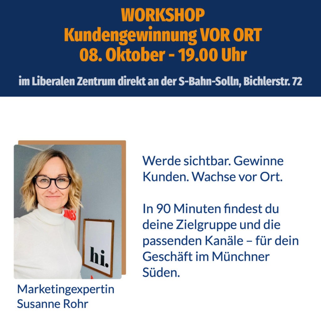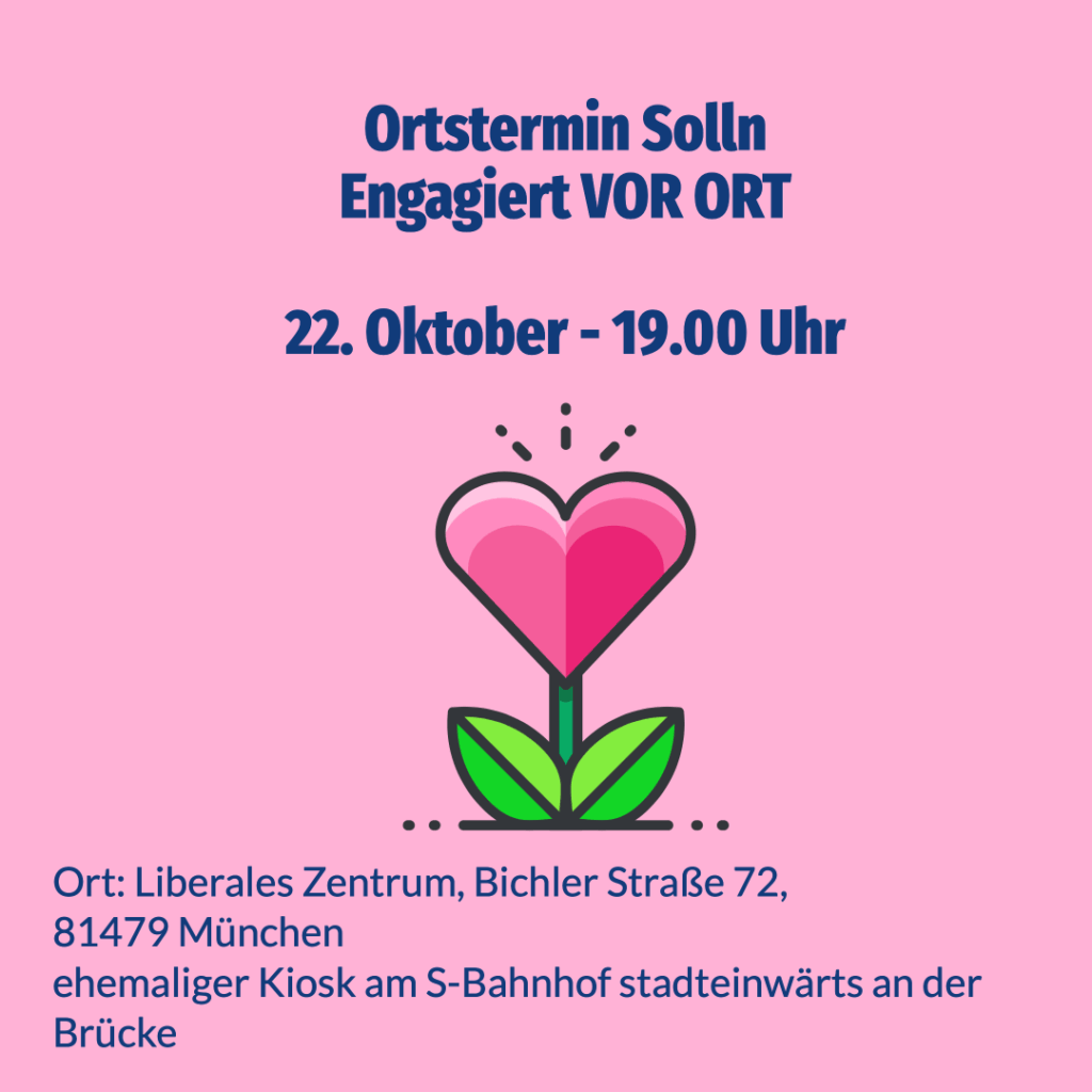 Außerdem möchte ich auf die Veranstaltung am 22. Oktober im Liberalen Zentrum hinweisen, wo ich beim „Ortstermin Solln“ lokales Engagement vorstelle. Lernt die Menschen hinter dem „Bücherschrank“ oder der „Bürgerinititative Grüngürtel München Süd“ kennen und bringt Eure Ideen mit!