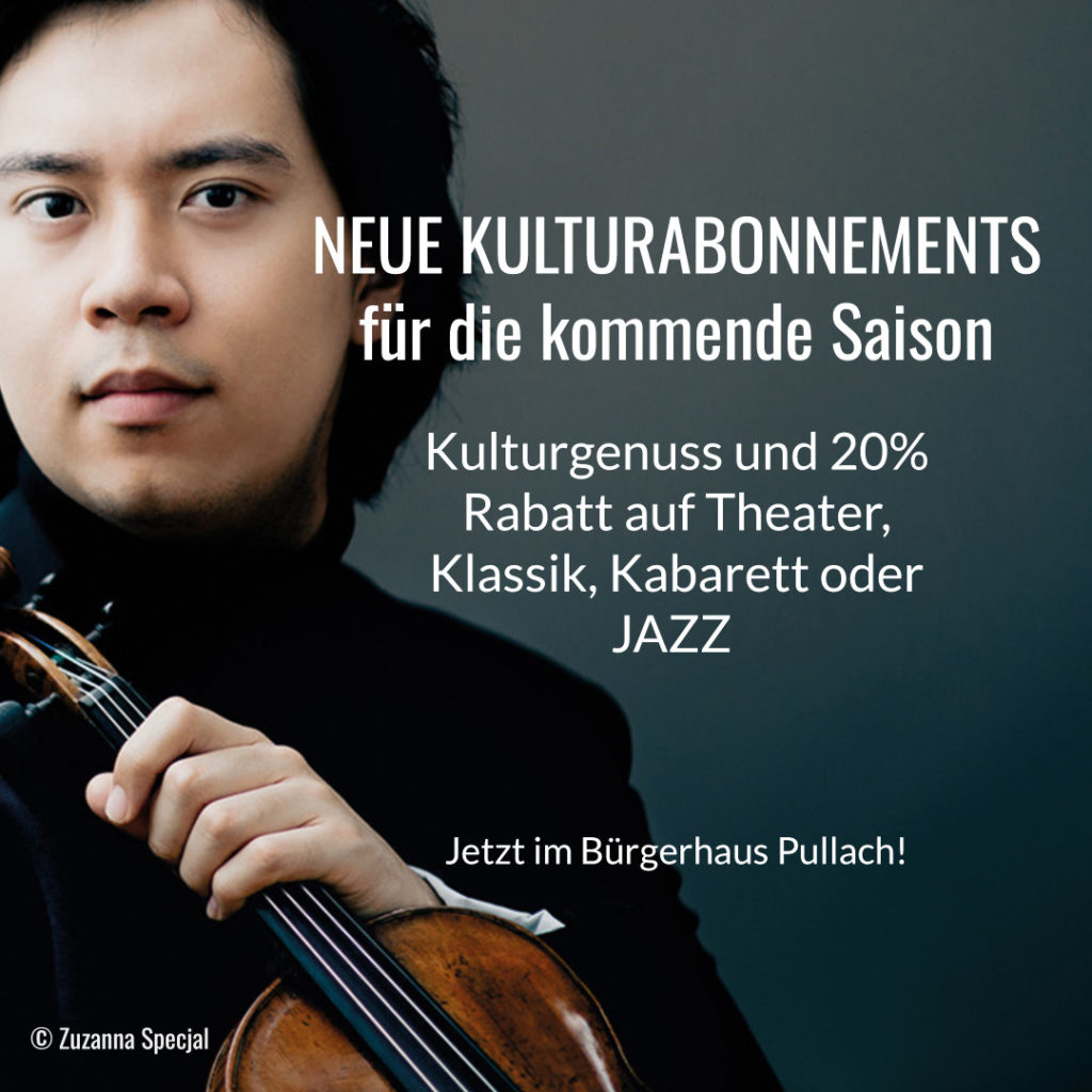 🎭 Kultur erleben statt nur streamen! 🎶 Das Bürgerhaus Pullach macht Jugendlichen ein unschlagbares Angebot:Für nur 30 Euro gibt es das Jugend-Abonnement – und damit die freie Wahl von 3 Veranstaltungen aus den Bereichen Jazz, Theater, Kabarett und Klassik in der kommenden