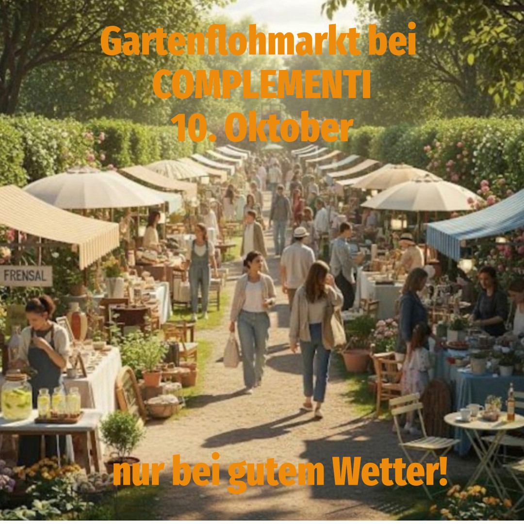 verwandelt sich der COMPLEMENTI Garten wieder in ein wahres Paradies für Flohmarktfans. Stöbern Sie durch eine große Auswahl an einzigartigen Fundstücken, und entdecken Sie vielleicht genau das, wonach Sie schon lange gesucht haben.