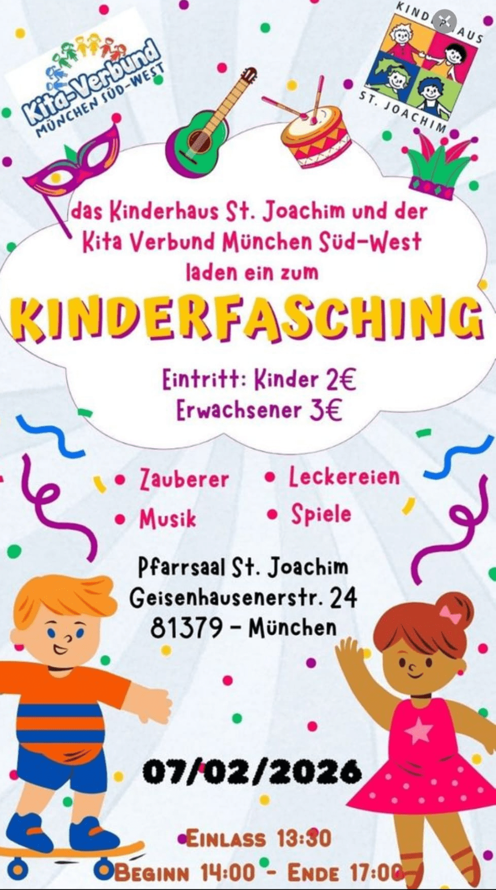 das Kinderhaus St. Joachim und der Kita Verbund München Süd-West laden ein zum KINDERFASCHING