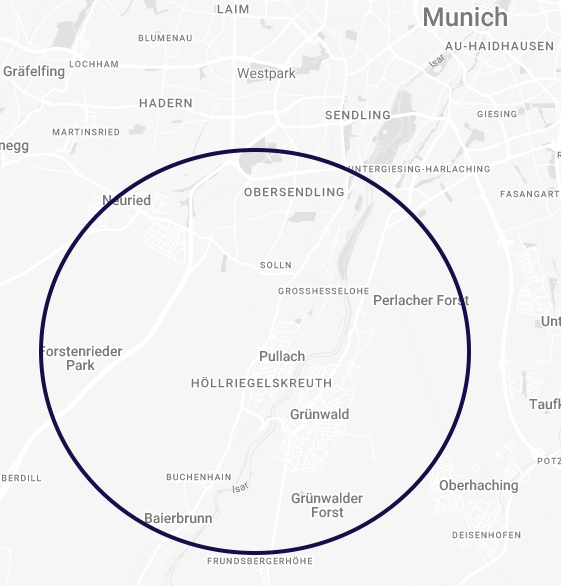 Der südliche Stadtrand Münchens ist mein Kerngebiet, mit dem Fokus auf Solln, Thalkirchen und Pullach, sowie Forstenried und Fürstenried – eine sehr schöne Gegend.